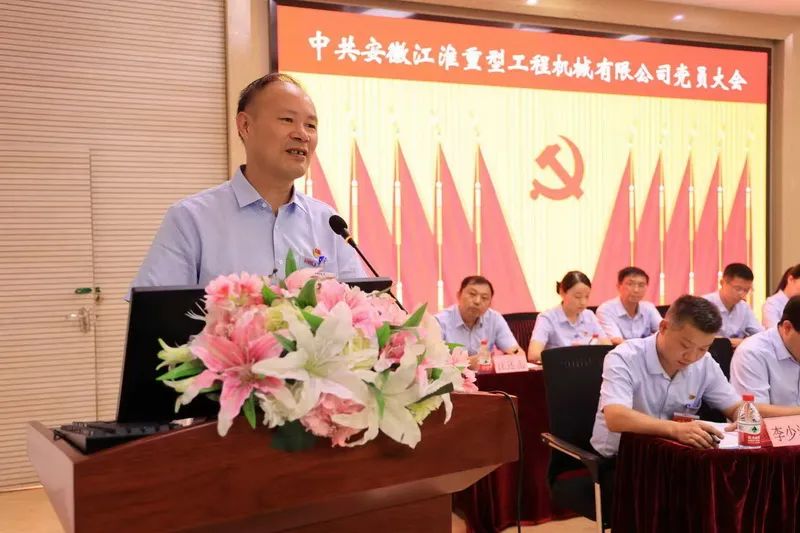 根据《中国共产党章程》、《中国共产党基层组织选举工作条例》等有关规定及集团公司党委批复,8月26日下午,中共安徽江淮重型工程机械有限公司两委换届选举大会顺利召开,股份公司党委委员、副总经理、江淮重工党委书记、董事长陈先友出席会议,江淮重工党委副书记、总经理姜文东主持会议,江淮重工全体党员共80余人参会。