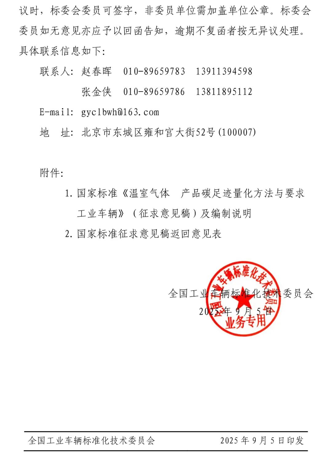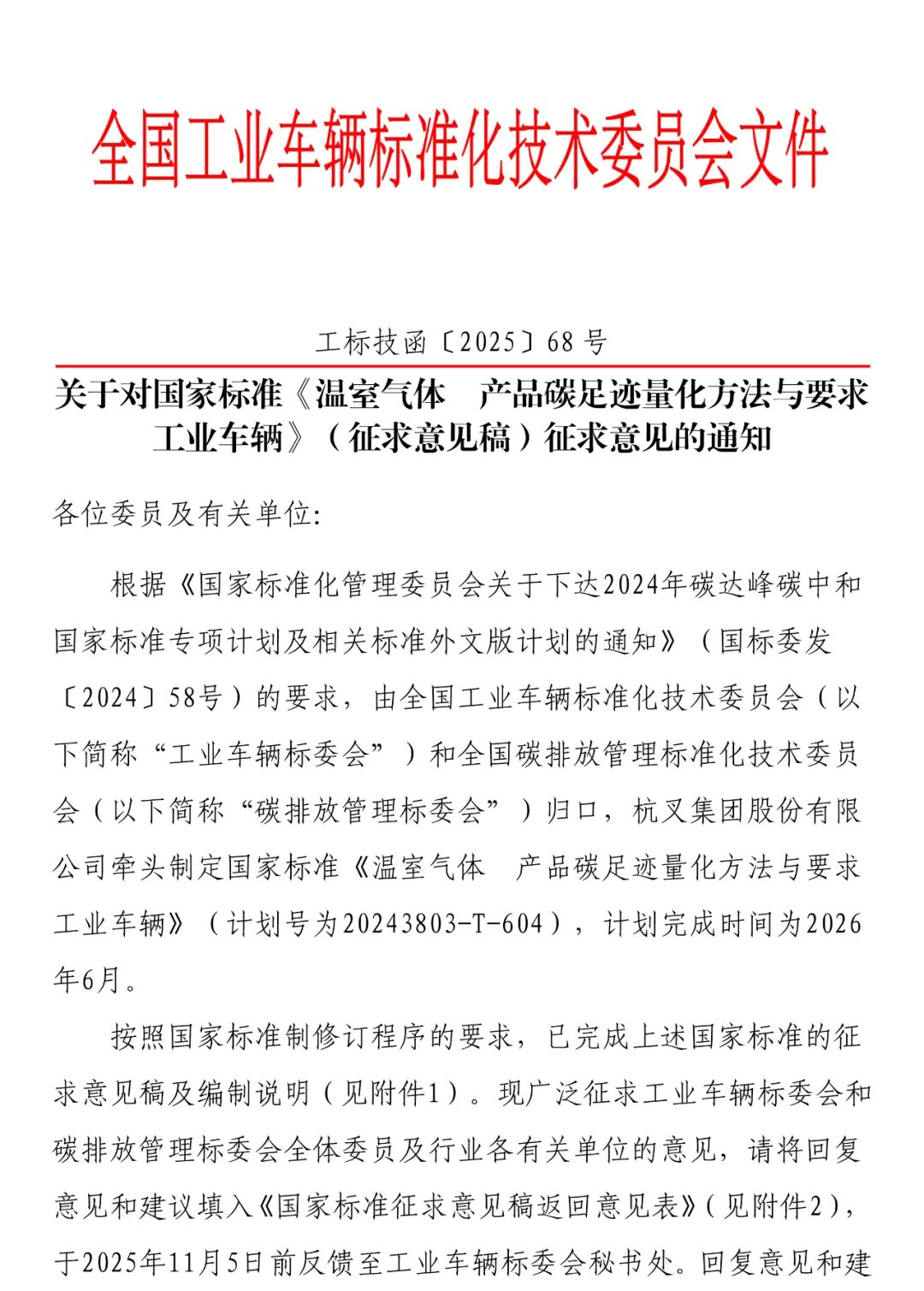 关于对国家标准《温室气体 产品碳足迹量化方法与要求 工业车辆》(征求意见稿)征求意见的通知