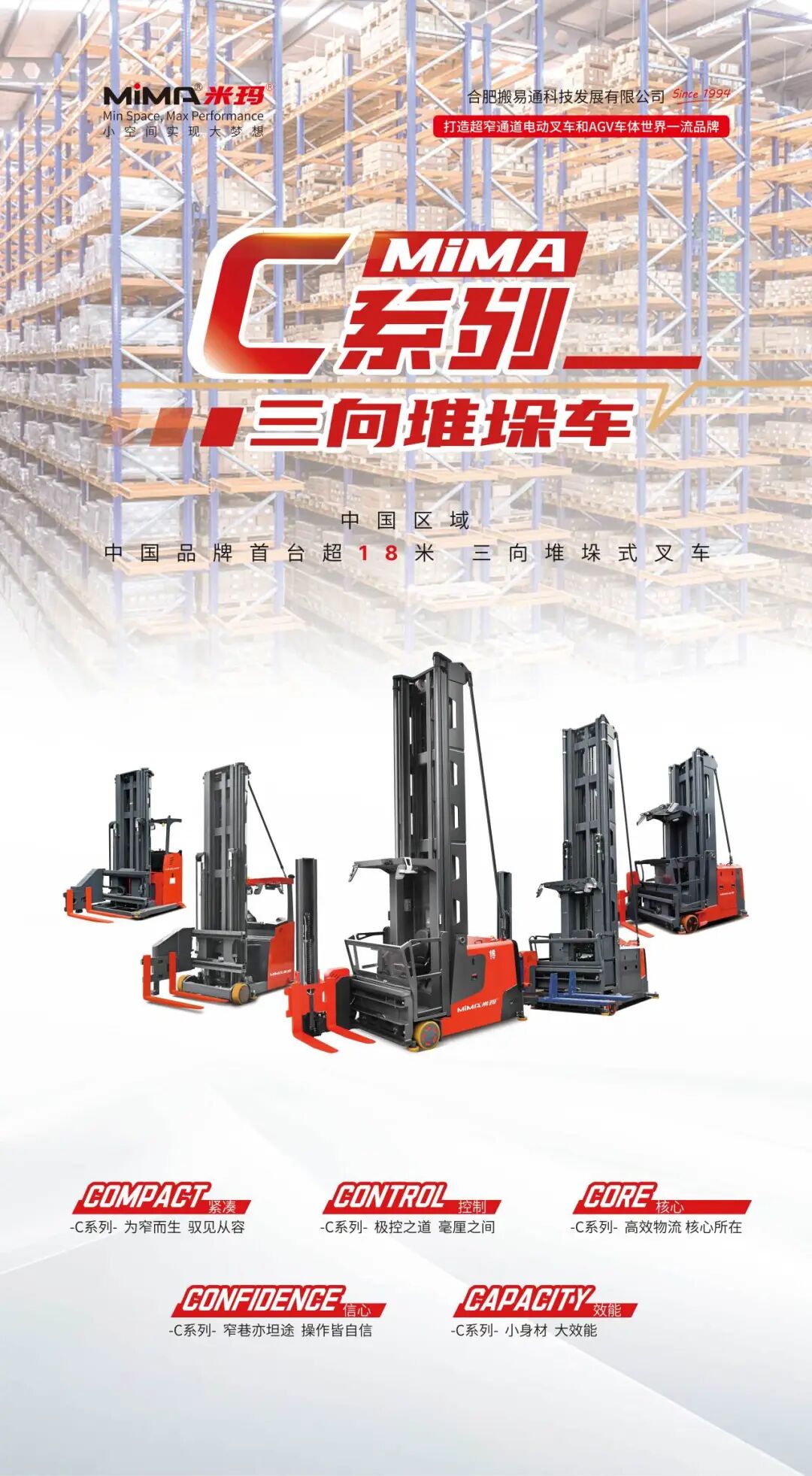 MiMA始终走在超窄通道电动叉车技术前沿,C系列三向堆垛车是其C计划会员权益的重要支撑,合肥搬易通不仅是国内最早实现超窄通道三向堆垛车研发与规模化量产的企业,还积极参与多项行业及国家标准的制定工作。凭借卓越的市场表现与不断扩大的全球业务网络,MiMA已稳居超窄通道叉车领域的领先地位,能够为客户提供高度定制化的解决方案,有效应对各种复杂物料搬运场景的独特需求。