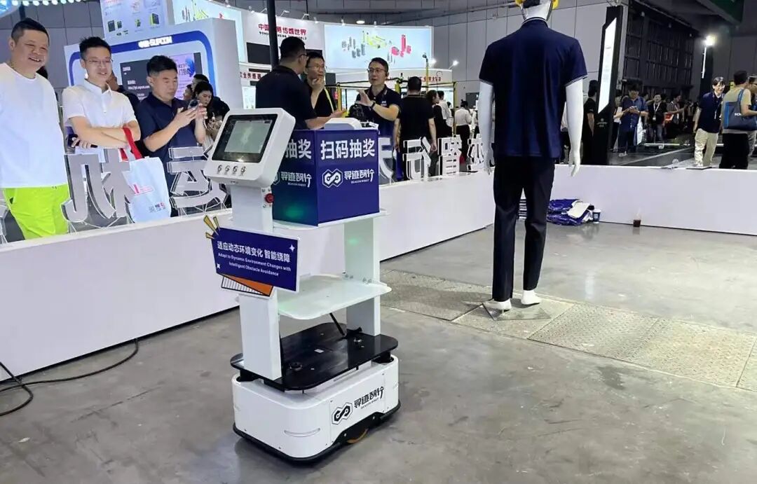 在寻迹智行的展台,最受欢迎的环节莫过于由多层箱格背负式AMR担任主角的互动抽奖活动。观众只需轻轻按下互动抽奖按钮,这台聪明的AMR便会立即接收到指令,精准地从等候区启动,背负着满载惊喜的抽奖箱,灵活地穿越人群,稳稳地将好运“送货上门”,让每一位参与者都对智能搬运的便捷性留下了深刻印象。