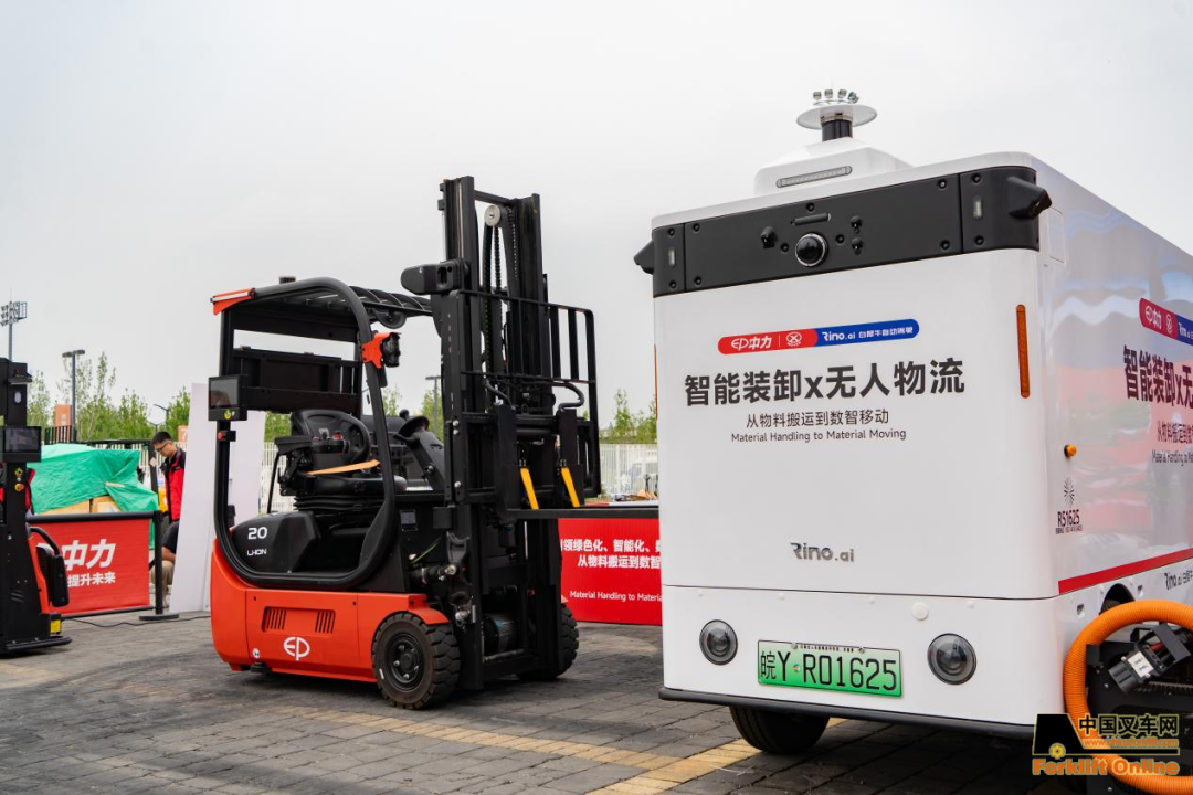 中力2.0t智能装卸机器人现场动态演示,自动识别托盘物料,对接无人物流车,完成货物的智能装卸。