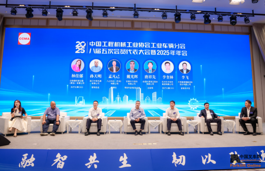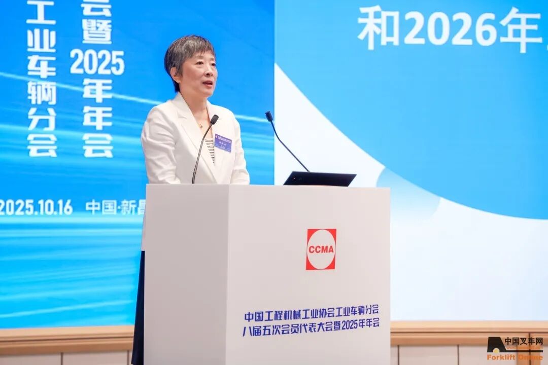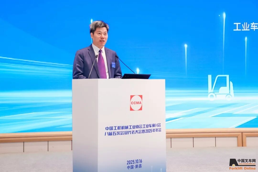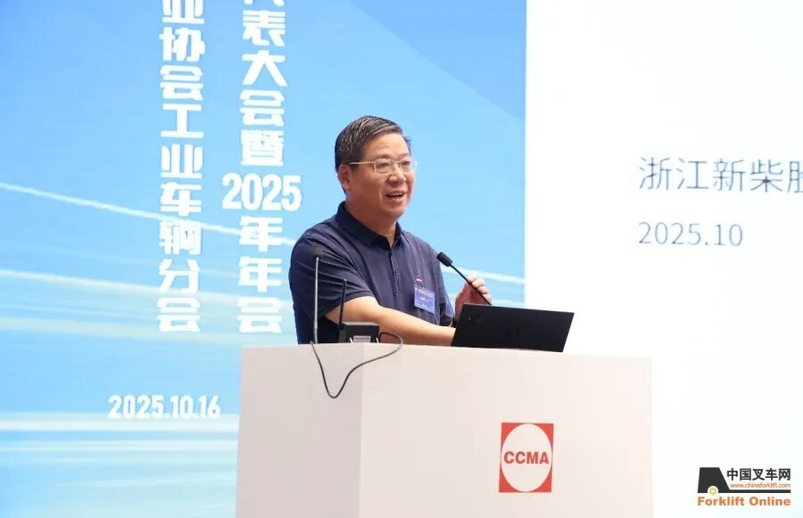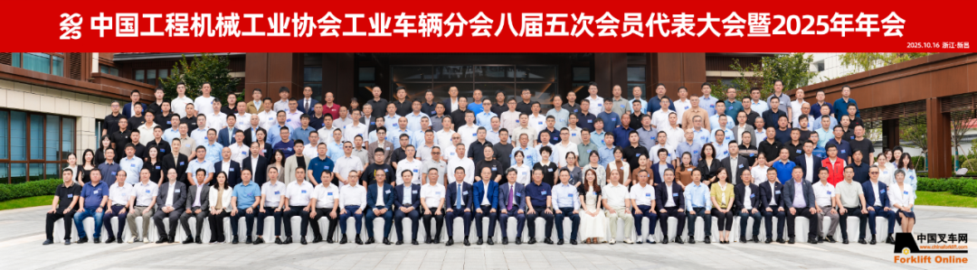 中国叉车网(www.chinaforklift.com)新闻中心2025年10月16日消息,由中国工程机械工业协会指导,中国工程机械工业协会工业车辆分会主办,浙江新柴股份有限公司、浙江中柴机器有限公司协办,爱动超越、协力仪表、唯创安全、京东数智、长源液压、米其林(中国)、琪富芮电子、康姆士座椅、卓盾重工、精拓轴承作为支持单位的“中国工程机械工业协会工业车辆分会第八届五次会员代表大会暨2025年年会”在浙江新昌隆重召开。来自全国各地工业车辆主机厂、零部件配套企业负责人和代表近300人参会。中叉网作为行业媒体和协会理事单位参会并现场报道。出席本次会议的领导嘉宾包括北京起重运输机械设计研究院有限公司董事、总经理黄越峰,中国工程机械工业协会秘书长吴培国,中国工程机械工业协会工业车辆分会秘书长张洁,安徽叉车集团党委委员、安徽合力股份有限公司党委副书记、总经理周峻,杭叉集团股份有限公司总工程师徐征宇,凯傲亚太战略、产品及商务高级副总裁谢德安,浙江中力机械股份有限公司董事长何金辉,诺力智能装备股份有限公司副总裁蒋汉平,龙工(上海)叉车有限公司常务副总经理张晨飞,柳州柳工叉车有限公司副总经理马晓东,台励福机器设备(青岛)有限公司董事、执行长林佳郁,宁波如意股份有限公司常务副总经理叶国云等。