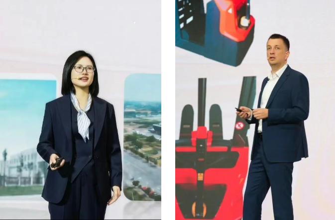 随后,诺力国际品牌营销管理部部长梁梅芳阐述诺力的发展历程与亚洲市场战略布局,从行业趋势、区域需求、竞争优势等维度,为合作伙伴清晰解读市场机遇。诺力股份总经理助理罗曼则聚焦服务能力升级,详细介绍诺力自主搭建的销售支持平台、telematics 远程运维技术及AI智能支持系统——客户可通过该系统获得24小时不间断AI技术支持,将大幅提升诺力在全球的服务响应效率与客户满意度,为经销商伙伴提供全方位保障。
