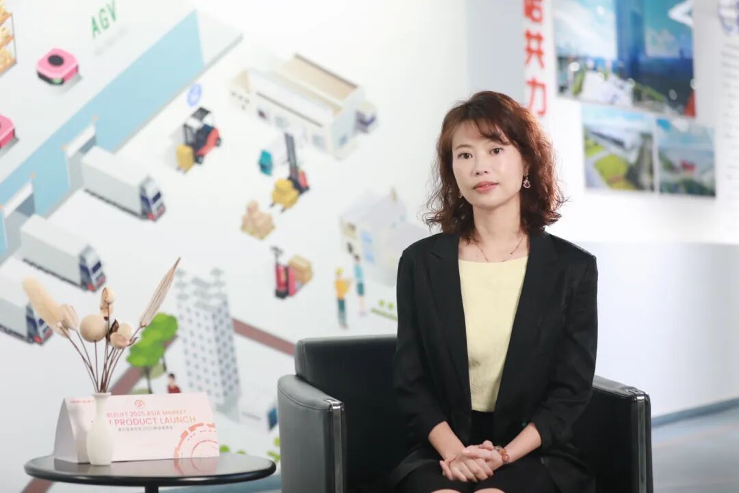 ▲诺力集团副总裁、诺力股份总经理毛英接受媒体采访