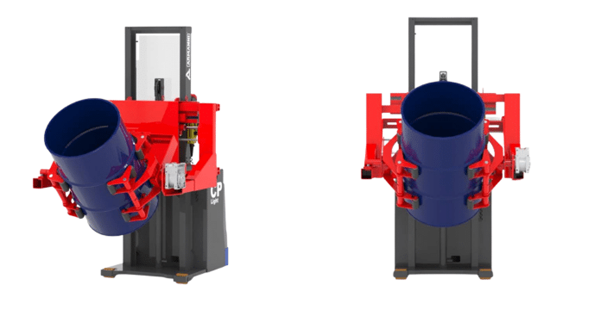 从应用场景来看,CP LIGHT PRF-F特别适用于化工原料分装、食品配料、涂料与胶黏剂生产、精细制造及废弃物处理等环节,尤其是在需要将桶装物料定量投入搅拌罐、反应釜或生产线进料口时,通过“抓取—提升—定位—前倾倾倒”一体化动作,替代传统“叉车+吊具+人工推拉”的多环节组合,显著减少人员暴露在高处、溢料或挥发性物质环境中的时间。相比使用通用叉车和手动翻桶工具,这种专用设备在可控性、重复精度和安全余度上具有明显优势。