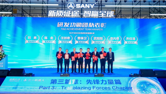 不断推陈出新,持续为客户创造价值,是三一机器人全体研发人员的征途。在“先锋力量”表彰环节,一批长期坚守、勇于创新、与公司共同成长的“研发先锋个人”和“研发功勋团队”受到隆重表彰。