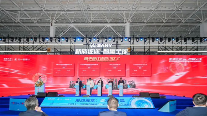 与智者同行,与创富者同心。在发布会最后一个环节,三一机器人四季度叉车订货签约仪式,经销商代表和三一机器人营销公司副总经理邹传林先生上台签约。
