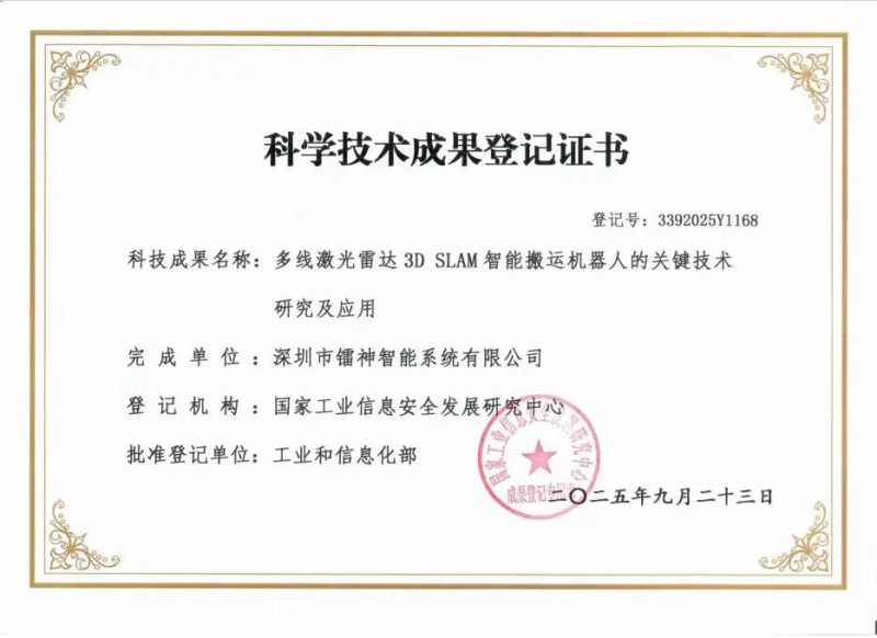 镭神智能始终坚守“专业 · 创新 · 品质”,经过8年的努力得到了国家及省级政府的认可,荣膺2020年度国家科技进步二等奖,是国家工信部评选的新一代人工智能产业创新重点任务揭榜优胜单位,入选国家级 “专精特新”小巨人企业名单,是广东省唯一一家激光雷达工程技术研究中心。
