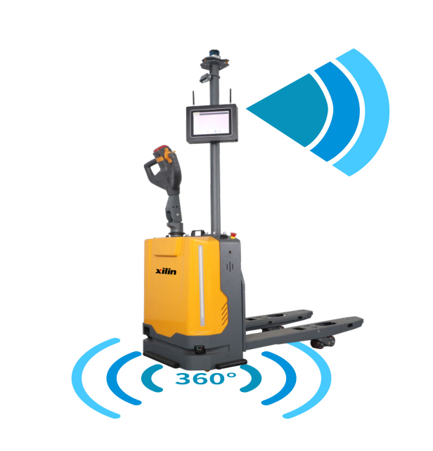 在应对复杂场景方面,该车型同样表现扎实。搭载的3DSLAM激光导航技术,能够适应动态变化的车间环境,实现灵活、稳定的路径规划;360度立体安全防护系统融合激光与视觉传感器,既可主动避障,也能识别行人,为人机混合作业提供了可靠的安全保障。此外,手动、自动两种模式可自由切换,无论是配合人工叉取后的定点搬运,还是对接MES系统实现全自动配送,都能顺畅衔接。托盘自动识别功能进一步减少了人工干预,提升作业精度与节奏。