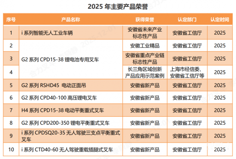 产品获此殊荣正是对合力产品卓越品质与创新实力的最佳认可。2025年度合力多款产品已获得省级荣誉称号,极大地提升了合力品牌的美誉度与市场竞争力。