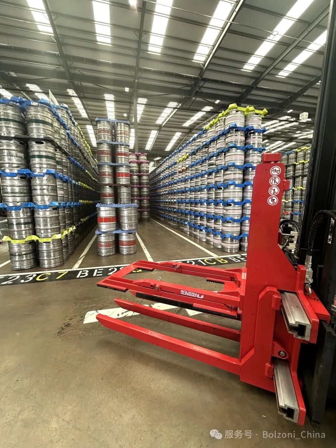 博索尼(BOLZONI)啤酒桶夹可同时搬运多个酒桶,减少人工操作并消除作业瓶颈,满足啤酒厂日常运营中对安全高效解决方案的需求。