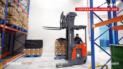 ●无需预留过宽过道,大幅减少仓库过道占用空间,下图中的车子的起升高度为7.5米的中位堆垛,更高起升高度可定制,助力企业充分挖掘垂直仓储空间潜力,显著增加货物存储量,提升仓库整体空间利用率。