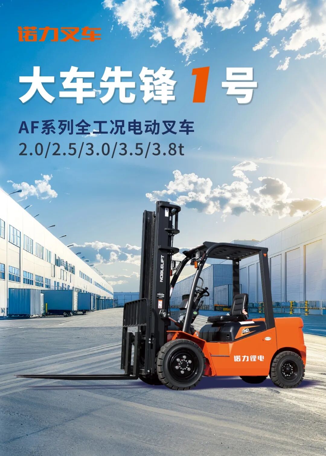 诺力大车先锋系列覆盖2.0-10.0T,油车、电车齐上阵,适配全工况场景,动力媲美内燃,续航灵活(快充/快换),支持油换电降本,易维护且安全舒适,全方位助力企业物流高效运转。1、大车先锋1号AF系列全工况电动叉车(2.0/2.5/3.0/3.5/3.8T)油换电优选!双15性能适配全工况,锂电加热续航强,稳定安全还舒适,室外作业超可靠!