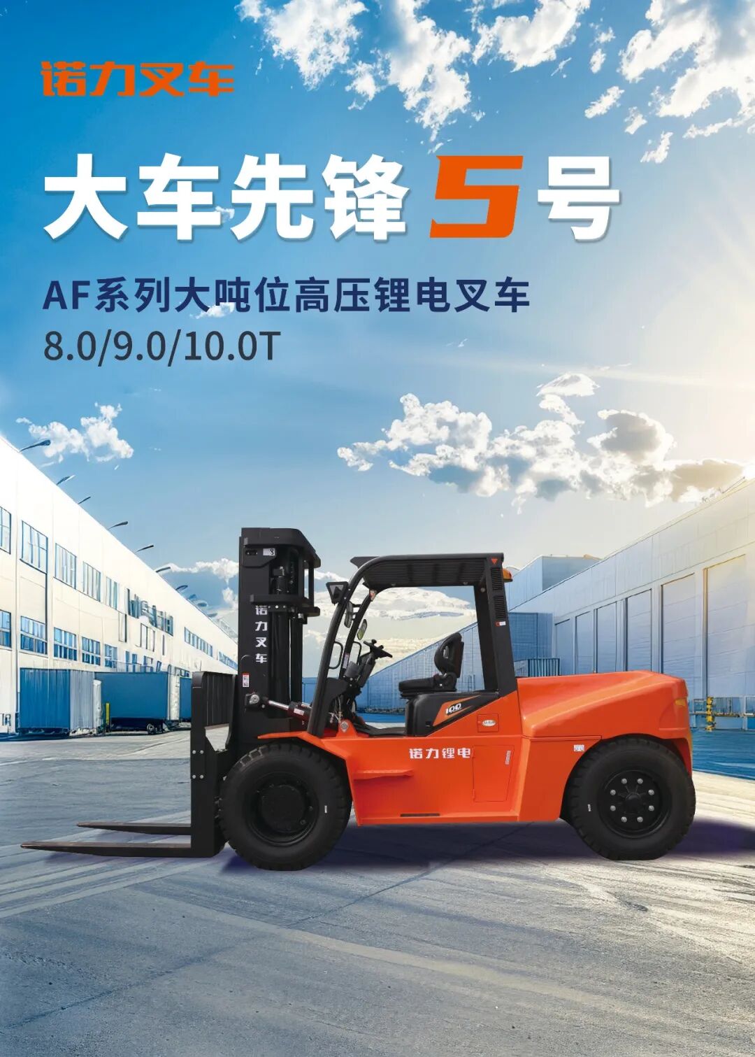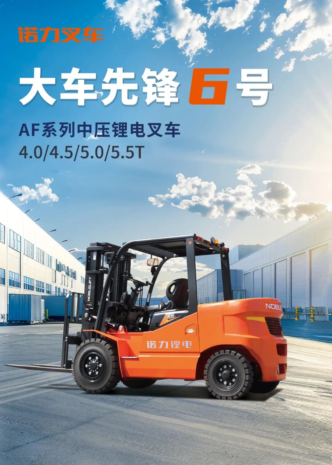 6、大车先锋6号AF系列中压锂电叉车(4.0/4.5/5.0/5.5T)诺力A系列锂电叉车,内燃底子 + 锂电劲儿!满载跑得起、爬得动,驾驶敞亮开着得劲,零件通用好修,稳当护得牢,油换电选它超省心~
