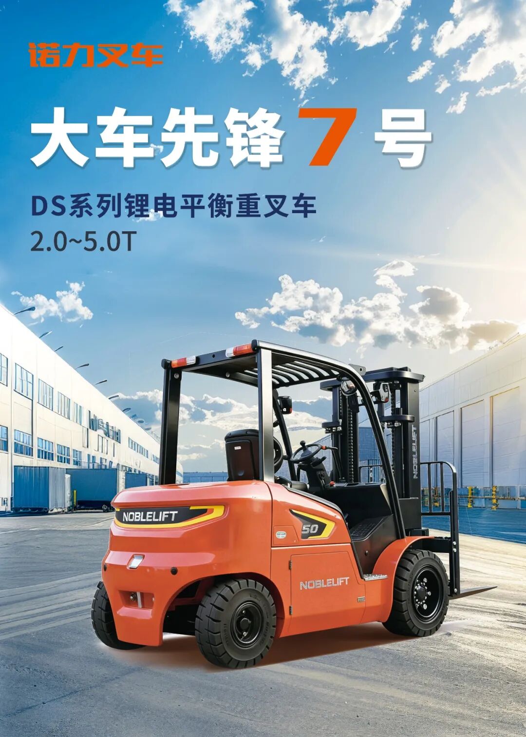7、大车先锋7号DS系列锂电平衡重叉车(2.0~5.0T)诺力DS锂电叉车,短轴距高灵活,锂电强续航,灵便转弯 + 长续航,重载作业好帮手!