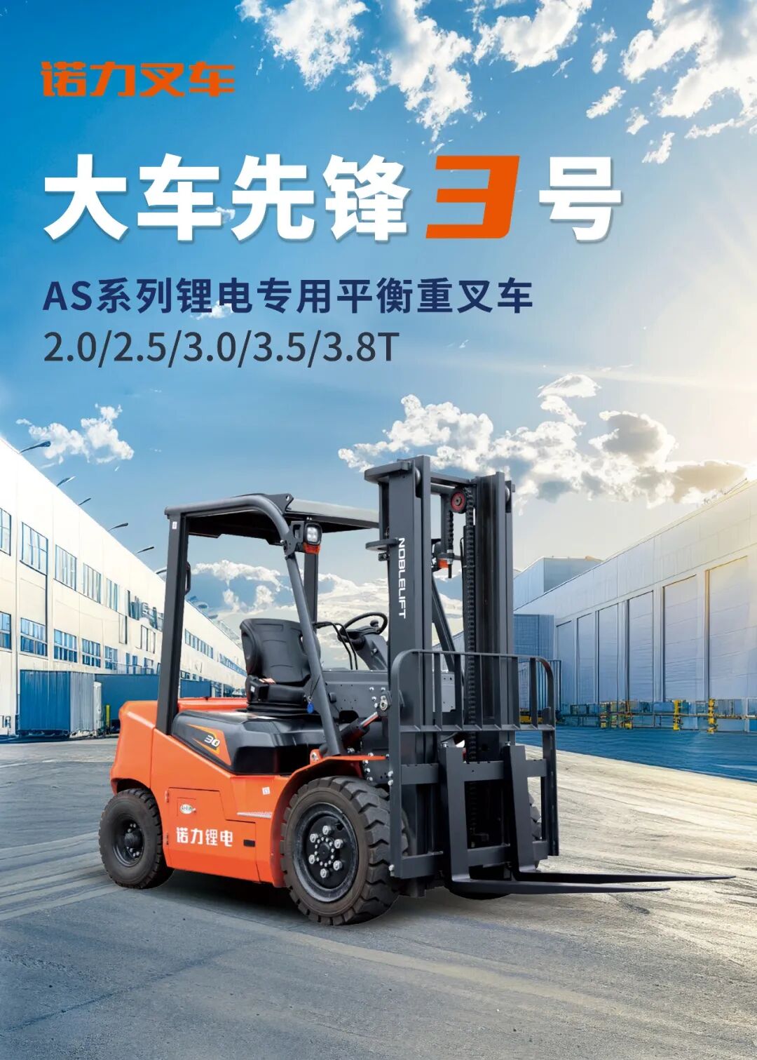 3、大车先锋3号AS系列锂电专业锂电叉车(2.0/2.5/3.0/3.5/3.8T)诺力全新锂电叉车,充电1-2小时、换电5分钟,续航不慌!动力足,还安静舒服,干活给力又省钱~