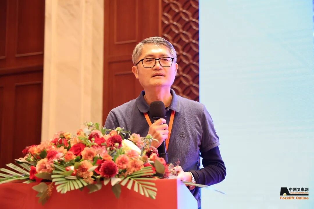中国工程机械协会工业车辆分会张洁秘书长在发言中表示,今天我们共同探讨工业车辆安全与发展。当前,全球工业车辆市场电动化、智能化趋势显著,中国占比已超40%,成为全球最大市场。电动平衡重叉车锂电占比达76.85%,仓储车增长迅猛。未来,我们将聚焦电动化、智能化及国际化,深化服务与创新,构建行业生态。同时,安全是重中之重,推动叉车安全日活动,从技术、制造、销售、使用四维度提升安全水平,减少事故。让我们携手共创安全、智能的未来!