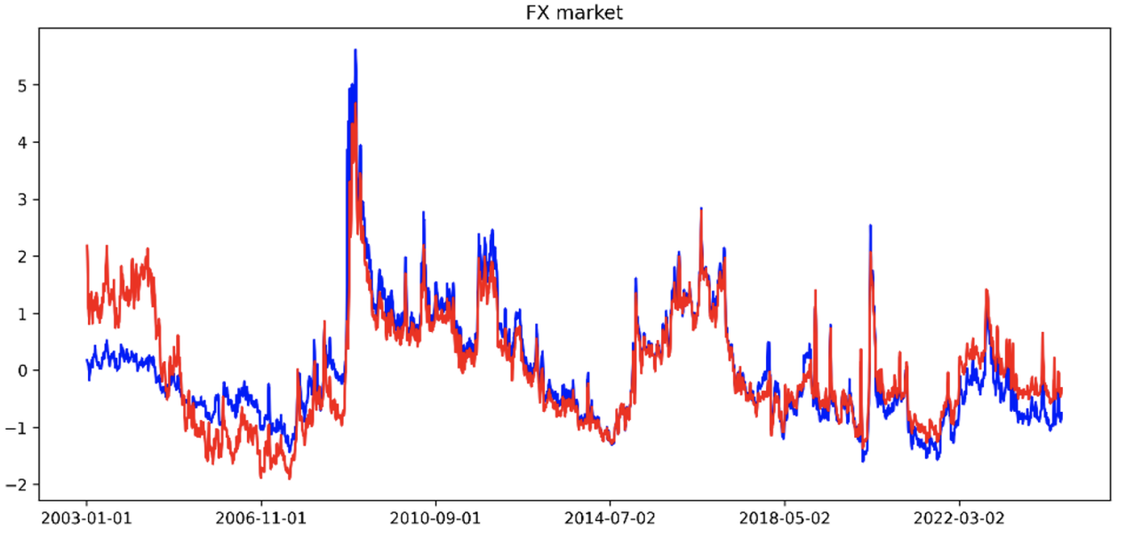 Aquilina等人(2025)采用了一种不同的方法,他们利用大型语言模型(LLM)将数值数据与文本信息相结合。该研究聚焦于欧元/日元货币对偏离三角套利平价(TAP)的情况,这是外汇市场失灵的关键指标。通过将循环神经网络(RNN)与LLM相结合,作者构建了一个两阶段框架,用于预测市场压力并识别其潜在驱动因素。