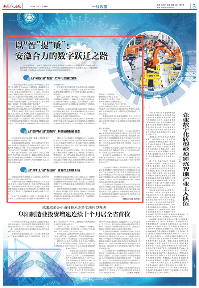 AGV来回穿梭,工业机器人精准焊接,总控室大屏数据实时跳动……走进安徽合力的智能车间,一幅井然有序的数字化生产图景扑面而来。作为中国工业车辆行业的领军者,安徽合力正以一场深刻的自我变革,诠释着传统制造业如何通过数字化转型迈向高质量发展。