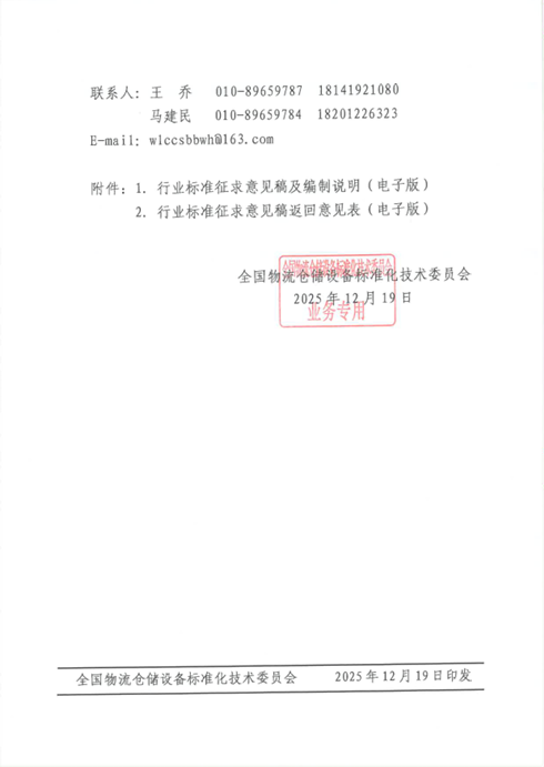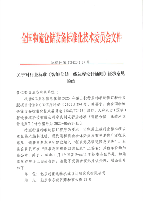 关于对行业标准《智能仓储 线边库设计通则》征求意见的函