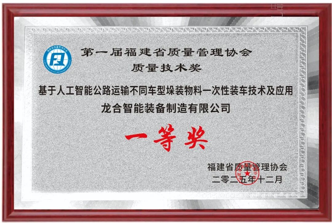 近日,2025年首届福建省质量管理协会质量技术奖颁奖仪式在福州举行。该奖项旨在表彰在重大质量瓶颈问题攻关、推动行业或产业质量提升方面做出突出贡献的组织和个人,全省60个项目同台竞技,经严苛评审和现场答辩,28个项目脱颖而出,其中一等奖仅6项。公司申报的“基于人工智能公路运输不同车型垛装物料一次性装车技术及应用”项目,凭借硬核研发实力与卓越产业化成果,成功摘得一等奖桂冠。