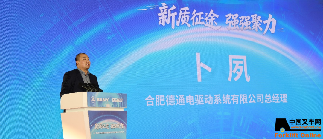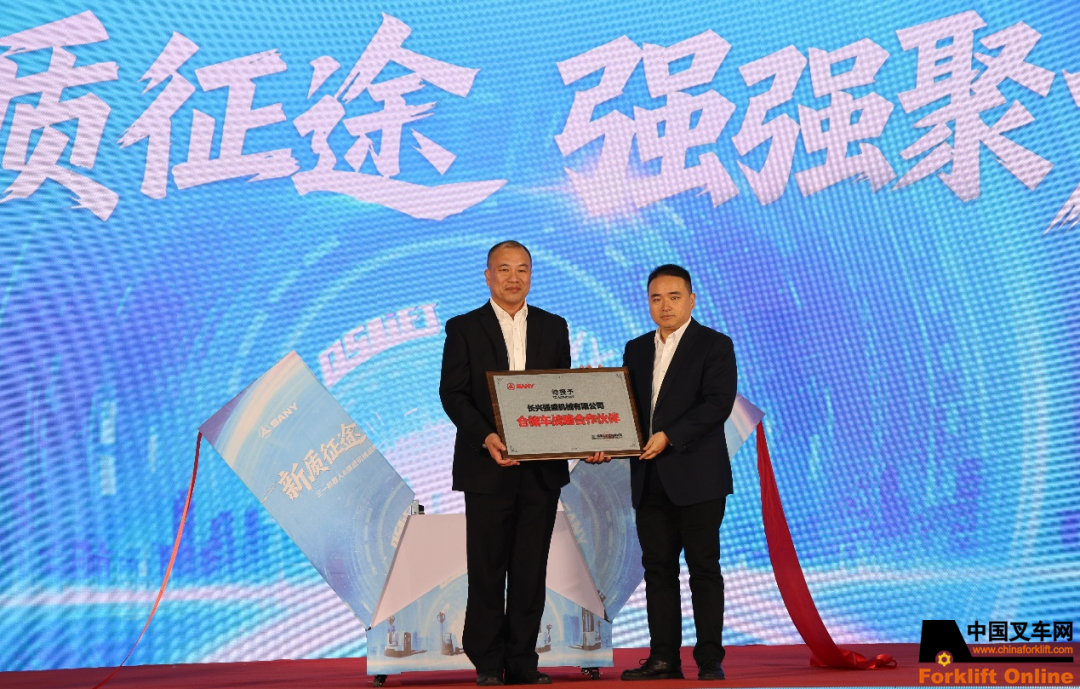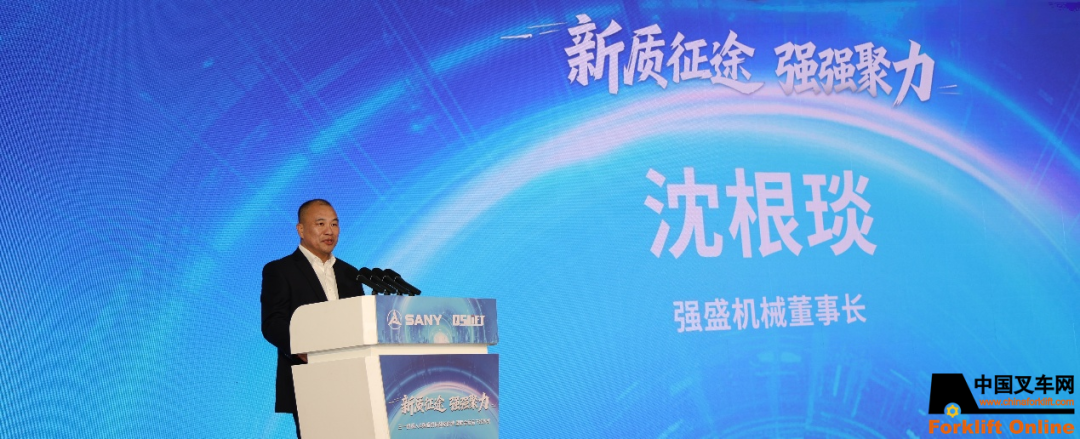 长兴强盛机械有限公司董事长沈根琰感谢大家莅临长兴并见证战略合作授牌暨新品下线仪式表示衷心感谢!当前,叉车行业正加速向电动化、智能化转型,电动叉车份额已超七成。此次合作,我们将携手三一,深度融合新能源与智能化技术,打造新一代智能物流装备,共同开拓全球市场。未来,我们将创新服务模式,构建共赢生态。期待通过合作,实现三年产值突破五亿的目标!