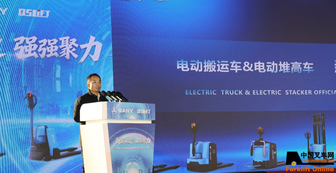 三一机器人科技有限公司轻型叉车总体所所长陈余作三一机器人轻型叉车新品介绍。