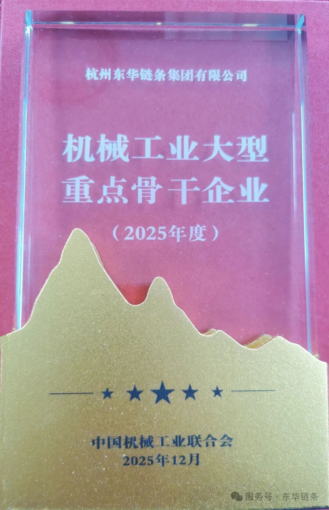 会上,东华链条凭卓越综合实力与行业引领贡献,获评“机械工业大型重点骨干企业”称号,这也是东华链条连续第十年获此殊荣。今年入选企业按研发创新能力、核心技术突破、产业带动作用、绿色低碳转型、国际化发展水平等多项核心指标,旨在筛选出引领行业发展方向、具备核心竞争力的标杆企业。