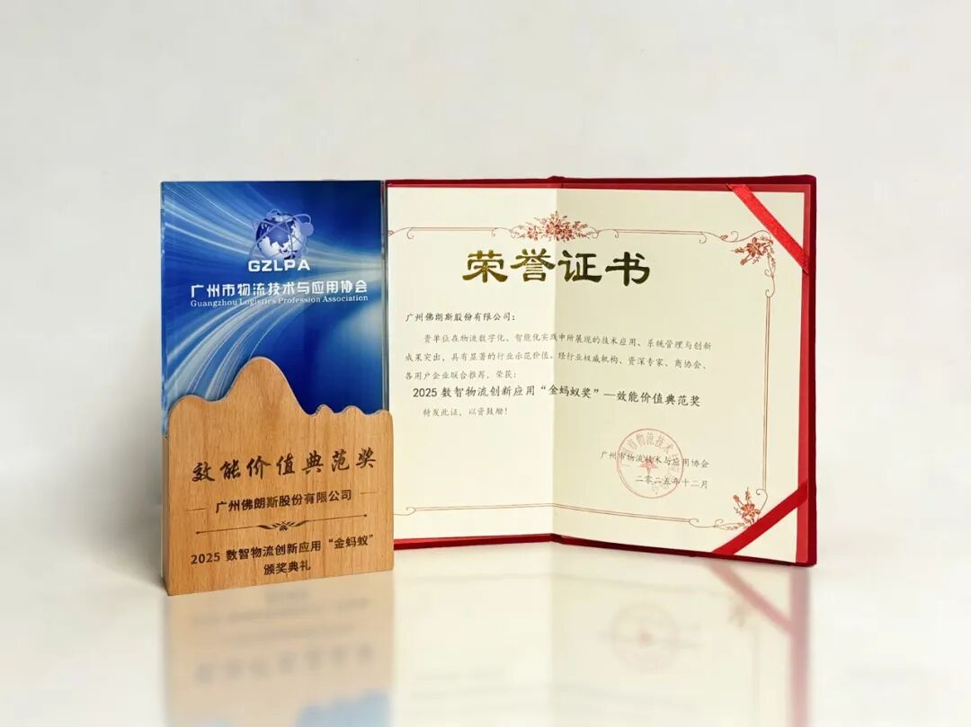 2025年12月23日,由广州市物流技术与应用协会主办的2025数智物流创新应用“金蚂蚁”颁奖盛典在广州隆重举行。此次大会汇聚行业精英,共绘数智物流发展蓝图。作为场内物流设备的龙头行业,佛朗斯股份受邀出席盛会,并凭借智慧资产运营管理系统项目,成功斩获本届金“蚂蚁奖”--效能价值典范奖。