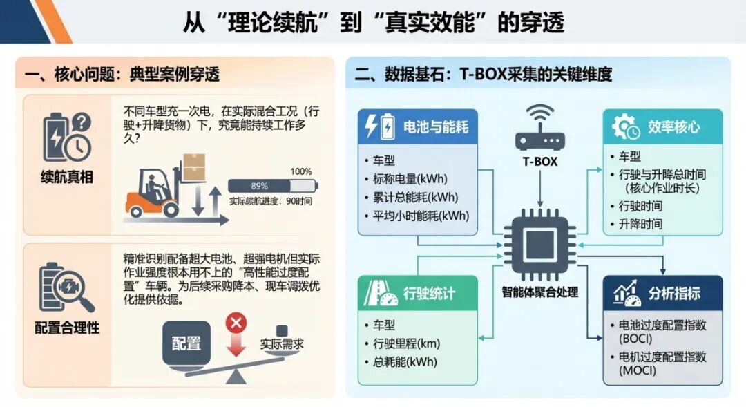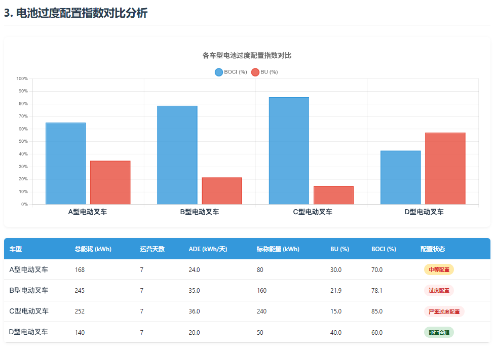 ·配置合理性:如何精准识别那些配备了超大电池、超强电机,但实际作业强度根本用不上的“高性能过度配置”车辆?从而为后续采购降本、现车调拨优化提供依据。