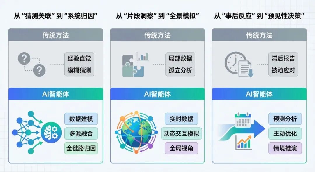 3. 从“静态报告”到“行动指令”传统分析结果往往止步于静态报告。AI智能体基于诊断结论,可直接生成具体的、可执行的优化指令,驱动业务自动闭环。