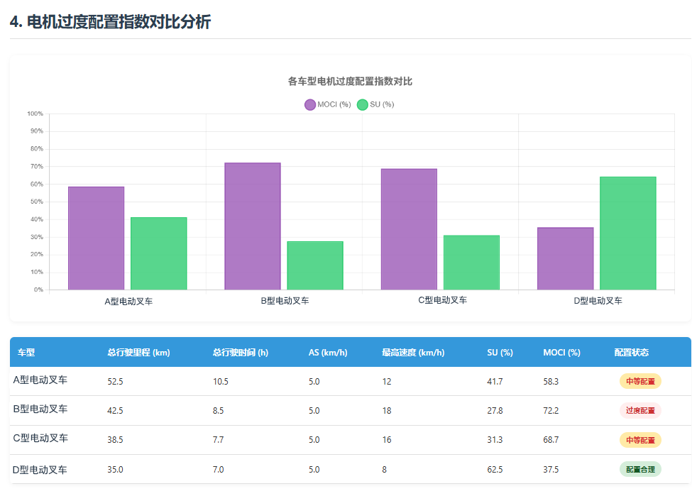 大模型阈值预警:当MOCI > 70%,AI自动标记,提示该车电机功率对于当前运营场景严重过剩。