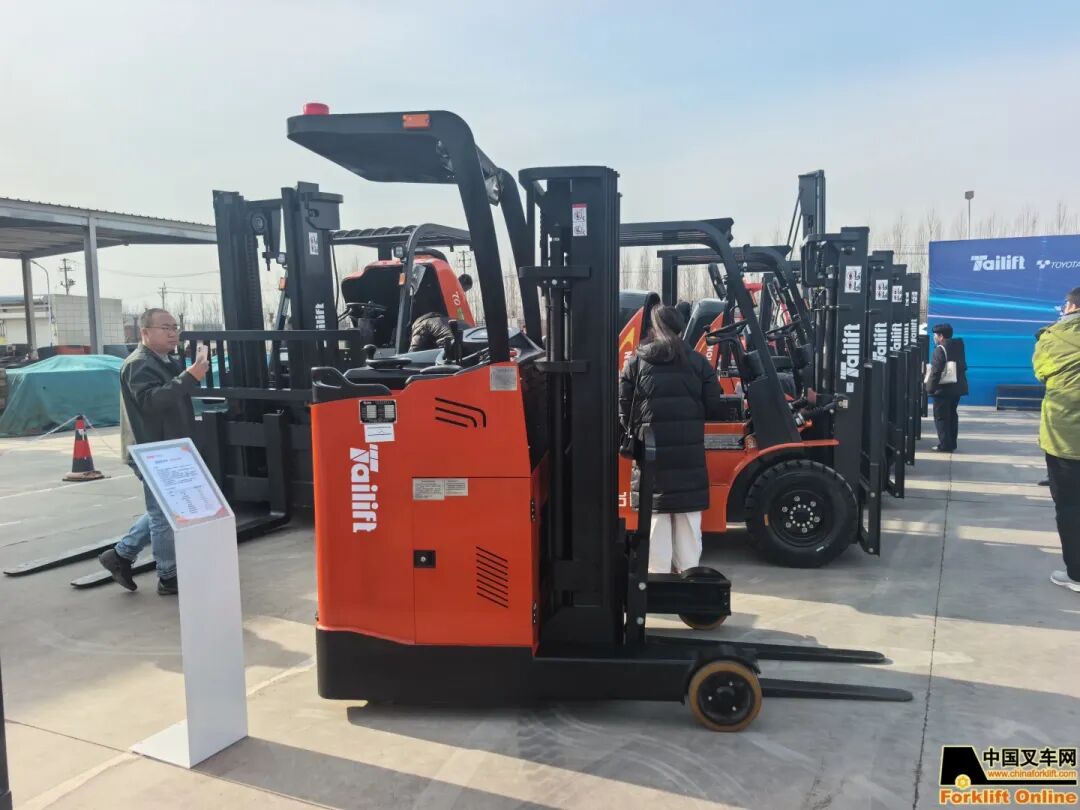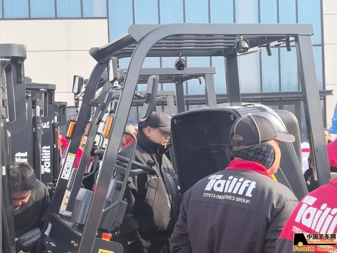 室外环节以新品展示与试驾体验为主。近二十台Ⅰ—Ⅴ类叉车列队呈现,形成覆盖通用搬运与多场景应用的产品阵列,其中第8代新锂电车型与2.0—3.8t新内燃平衡重叉车尤为吸睛,并安排实车体验与交流。围绕E系列升级路径,台励福推进“新内燃、新锂电、新外观”三条主线:通过配重与车身尺寸的体系化优化,使车辆在宽度变化不大的前提下实现更紧凑车身与更小回转半径,增强密集库位与窄巷道环境下的机动性;锂电端推出3.5t短轴与3.8t 80V等机型,配套封闭式新配重、永磁电驱及多档电池容量方案,覆盖从常规班次到长时作业的不同需求,并面向木材搬运、物流周转、租赁运营及属具应用等场景提供更匹配的配置选择。相较静态展陈,该环节强调“看得见、摸得着、开得动、可对比”,现场讨论多聚焦结构细节、操控反馈与配置差异。