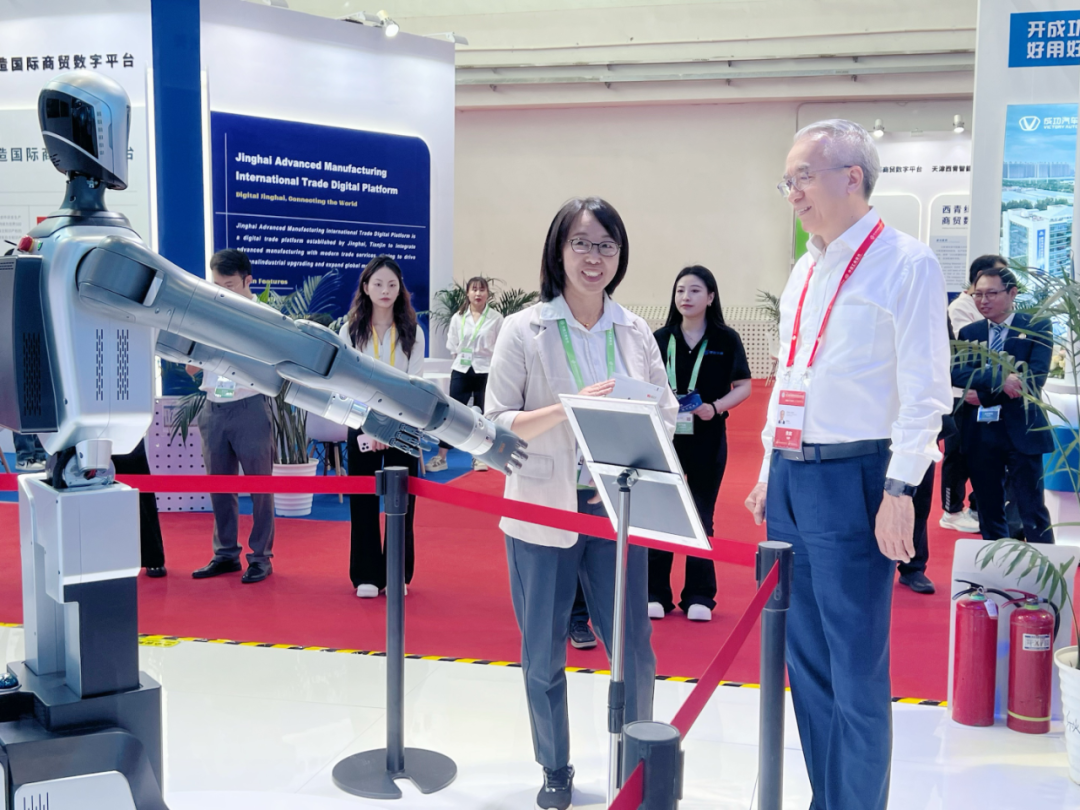 7月16日,第三届中国国际供应链促进博览会(以下简称“链博会”)在(北京)中国国际展览中心(顺义馆)隆重开幕。威迈尔第二代人形机器人VersaBot(威宝)2.0首次公开亮相。