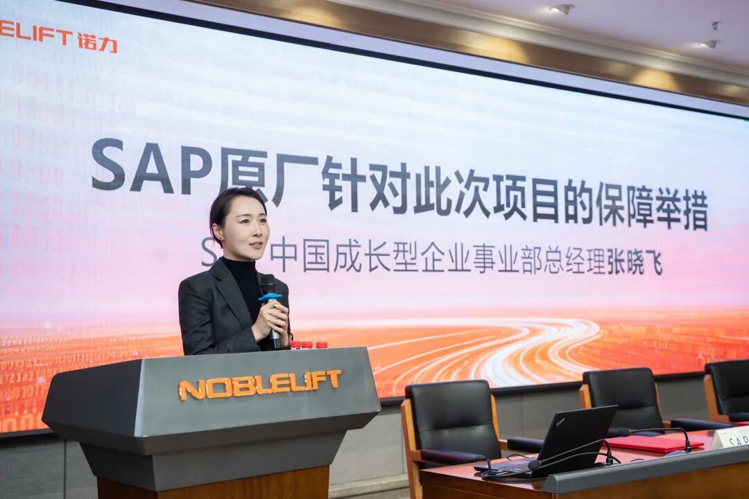 SAP中国成长型企业事业部总经理张晓飞代表SAP原厂发言,重点介绍了SAP为此次项目提供的全方位保障举措。她强调,SAP将全力支持诺力股份实现业务流程标准化、数据一体化与决策智能化,助力诺力构建灵活、高效、智能的数字化运营体系。