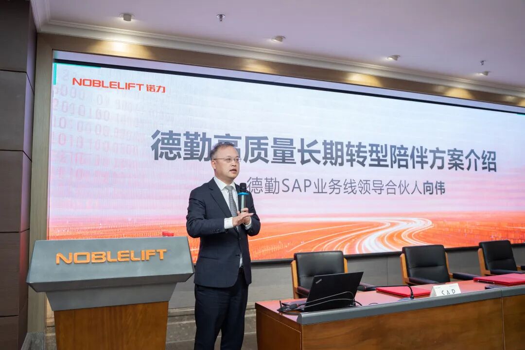 德勤SAP业务线领导合伙人向伟进一步介绍了德勤的“高质量长期转型陪伴方案”。该方案不仅关注系统实施,更注重组织能力建设与人才发展,致力于与诺力共同打造可持续的数字化转型生态。