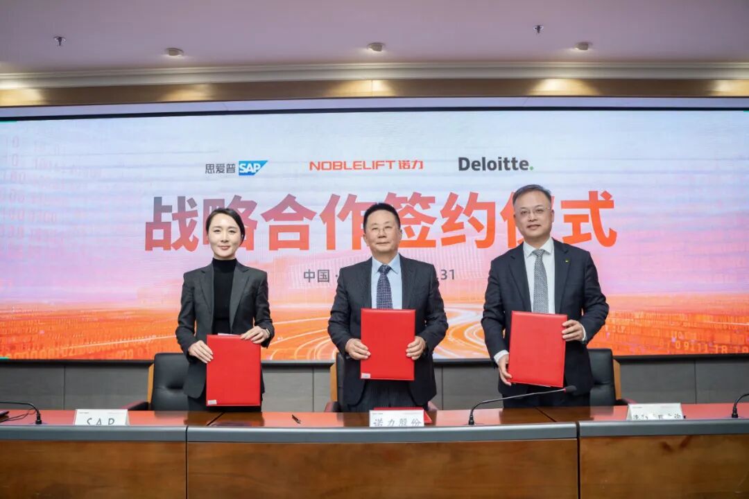 岁序更迭,新程即启。2025年12月31日,诺力智能装备股份有限公司(以下简称“诺力股份”)隆重举行“数智化转型战略合作签约暨SAP ERP项目启动仪式”。诺力股份与全球领先的企业应用软件解决方案提供商SAP、国际知名咨询服务机构德勤正式达成战略合作,共同推动诺力股份在智能制造与数字化转型领域的深度变革。