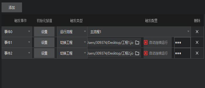 ♢ 通过“接收事件 + 全局触发”,实现工程切换、流程运行、数据回传全自动联动