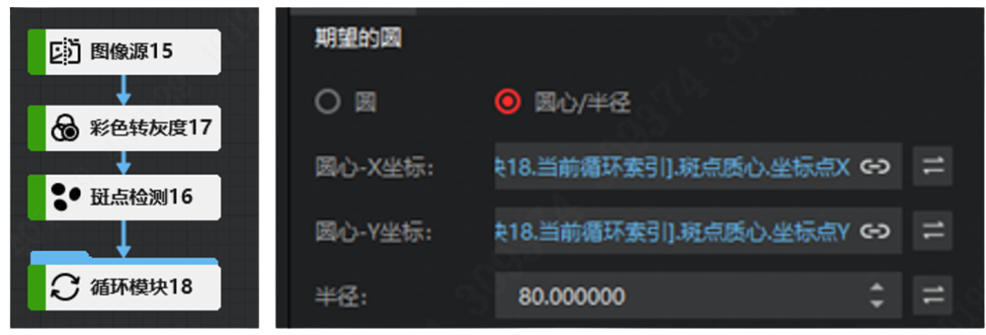 循环内找圆工具的期望圆心通过循环索引访问斑点质心数组元素