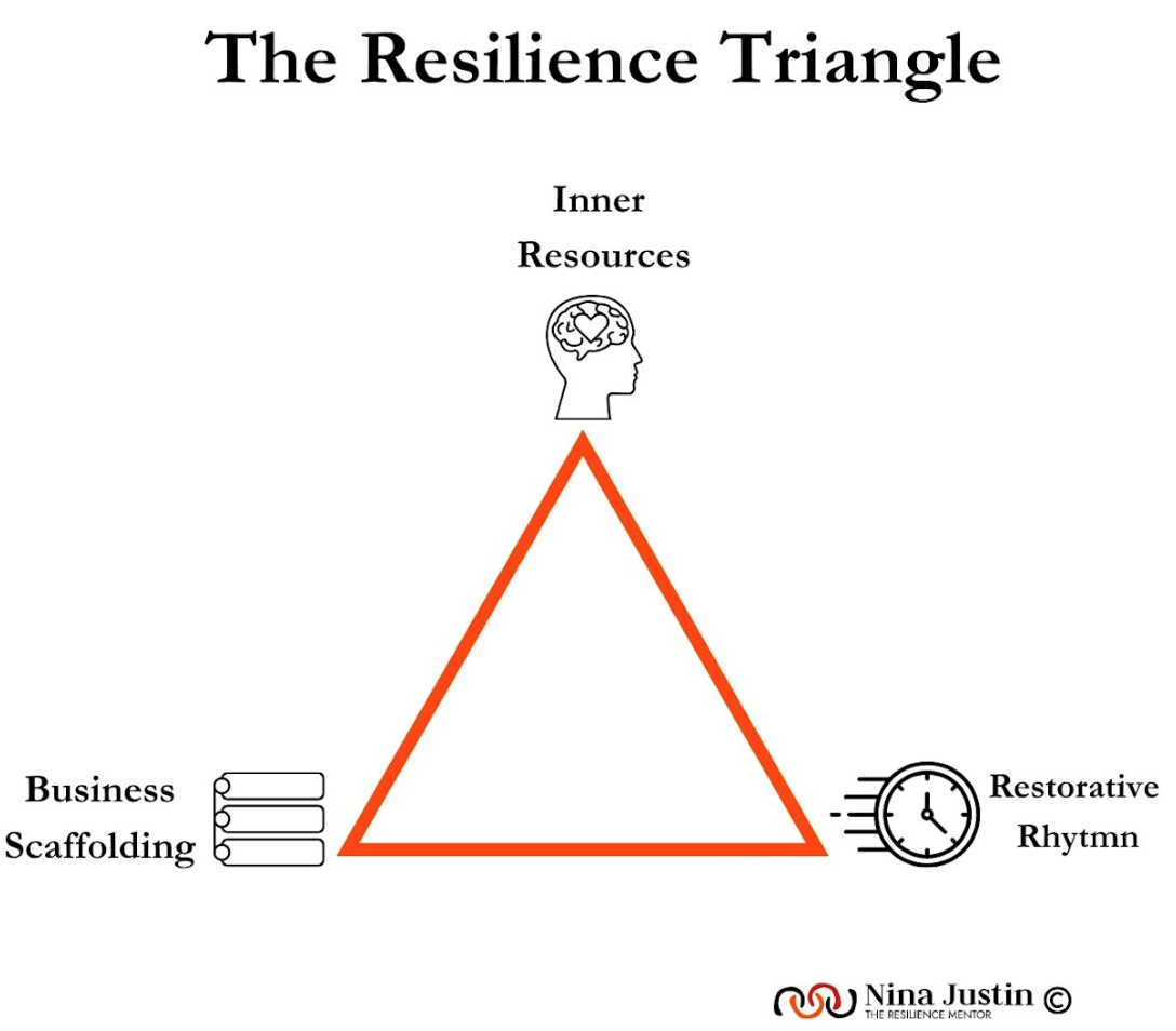 在我的工作中,我运用了我独创的“韧性三角”概念——一种由内而外构建韧性的方法。它将三个关键要素交织在一起: