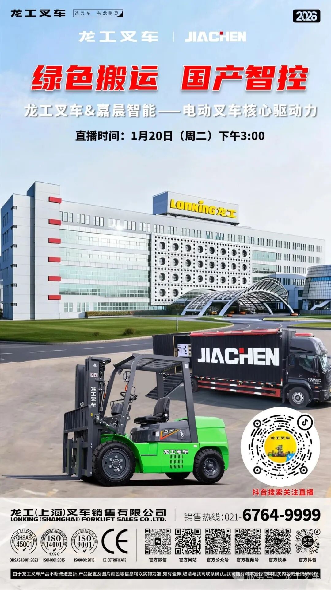 龙工(上海)叉车有限公司是中国龙工控股有限公司的全资子公司,自上市以来龙工叉车以其优良的品质和出众的性价比迅速占据了市场,营销网络和产品用户已遍布全国,现有各级代理商、服务商三百余家。