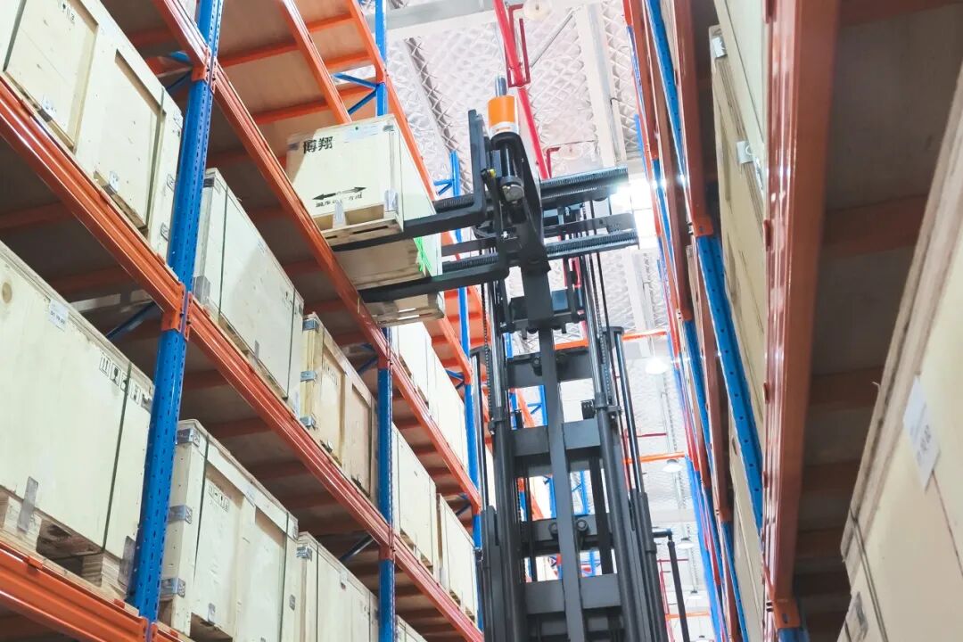本次交付的车辆载重1.5吨,高空载荷稳定性强,叉取货物平稳。