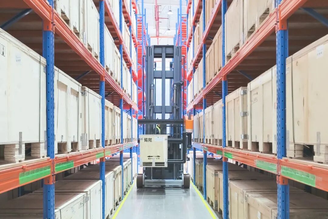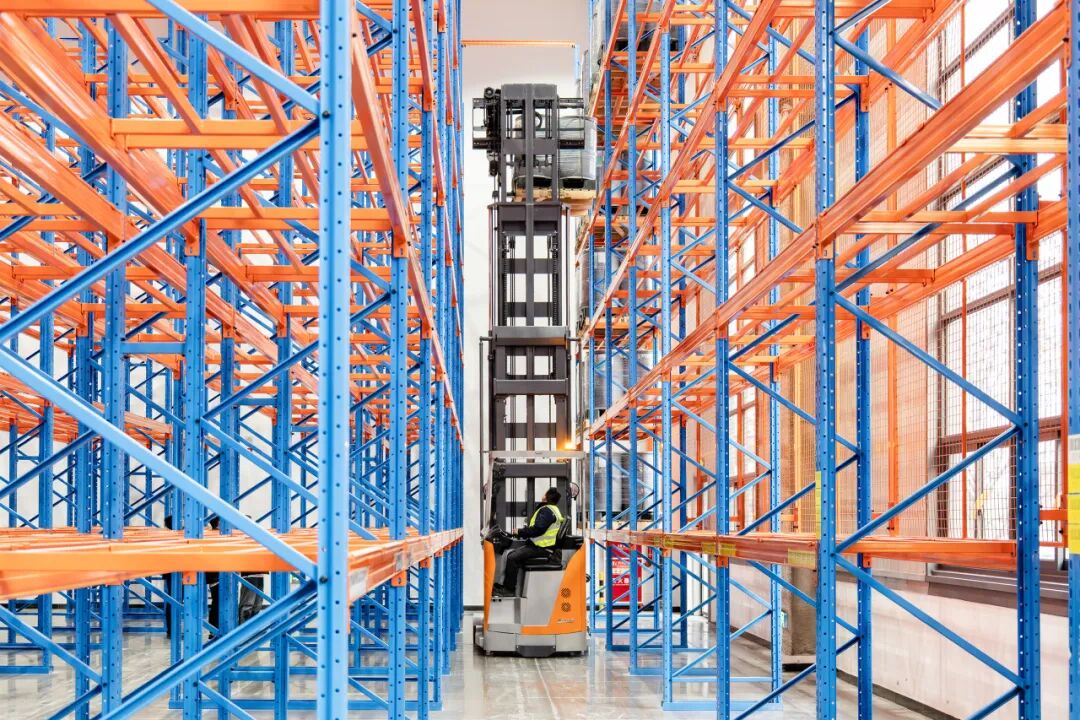结合客户需求和现场物流条件,卓一团队提供了窄巷道货架搭配4台座驾人下型三向叉车的物流方案。