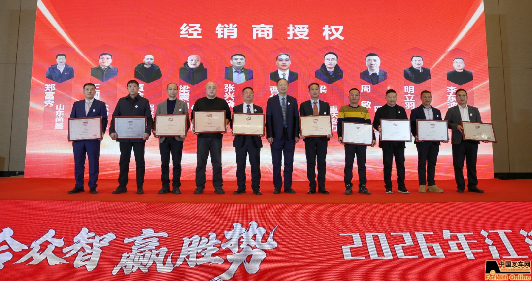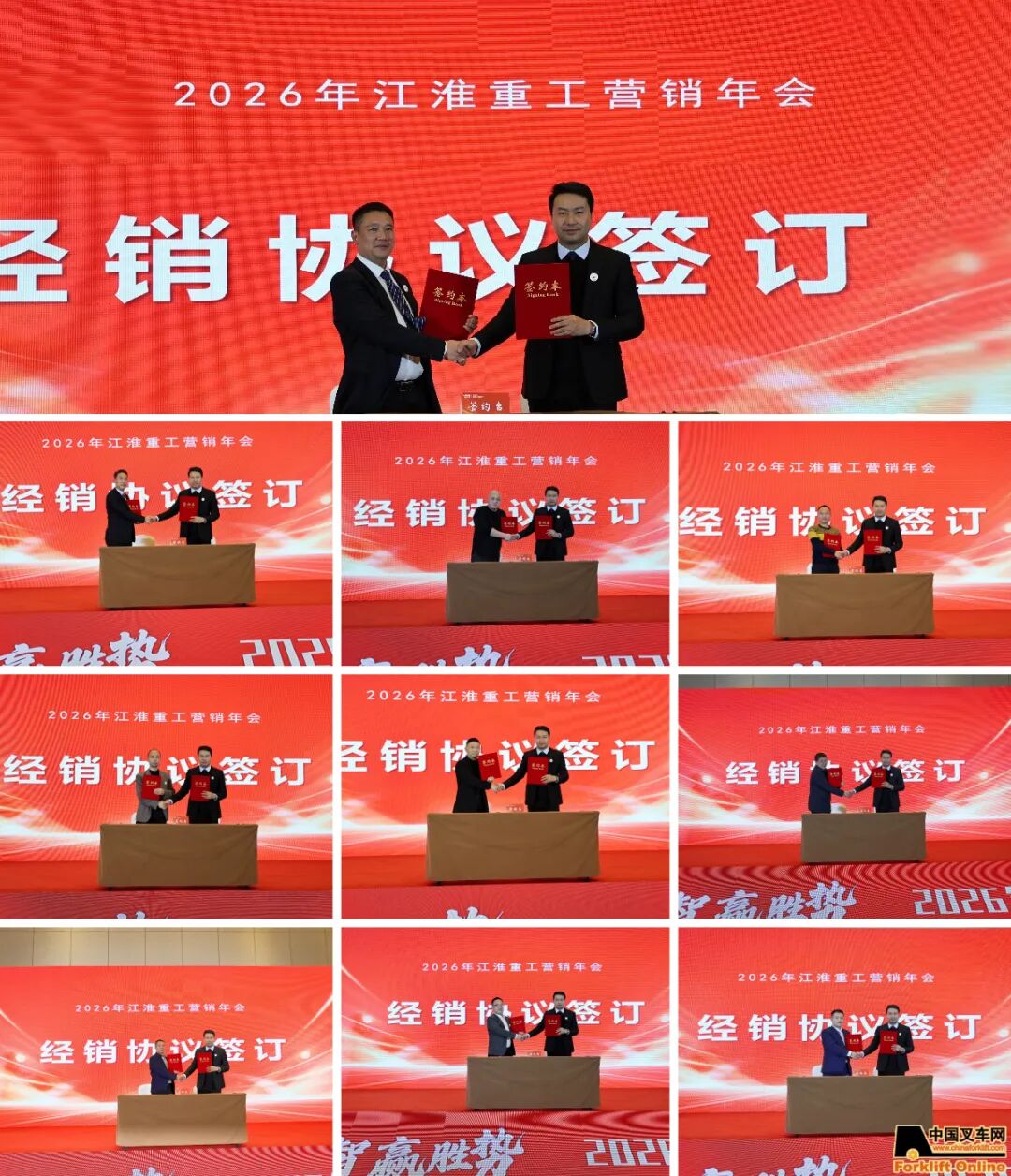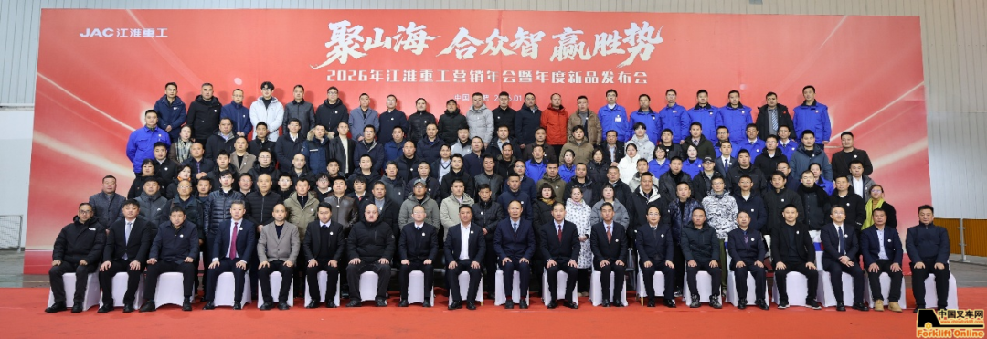 2026年1月20日,中国叉车网(www.chinaforklift.com)合肥讯,安徽江淮重型工程机械有限公司在合肥顺利举办“聚山海 合众智 赢胜势”为主题的2026年营销年会暨年度新品发布会。