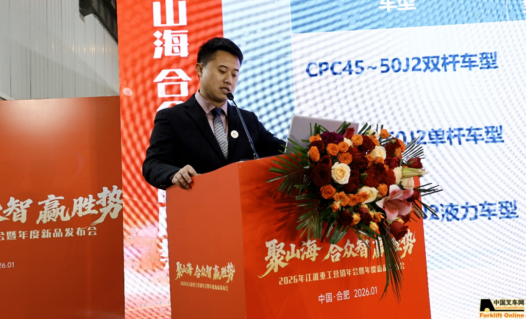 安徽江淮重型工程机械有限公司党委副书记、董事、总经理姜文东在2026年江淮重工国内营销年会上发言表示:2025年,江淮重工实现整车销量突破2万台,国内市场表现强劲,新能源叉车与智能物流业务板块增长尤为突出,为公司高质量发展注入新动能。面向2026年,江淮重工将聚焦“战略引领、市场扩张、科技创新、智能制造”四大核心方向,深化智能化与绿色化转型,携手合作伙伴构建共赢生态,共同推动江淮重工跻身中国叉车品牌第一方阵,开启高质量发展新篇章。