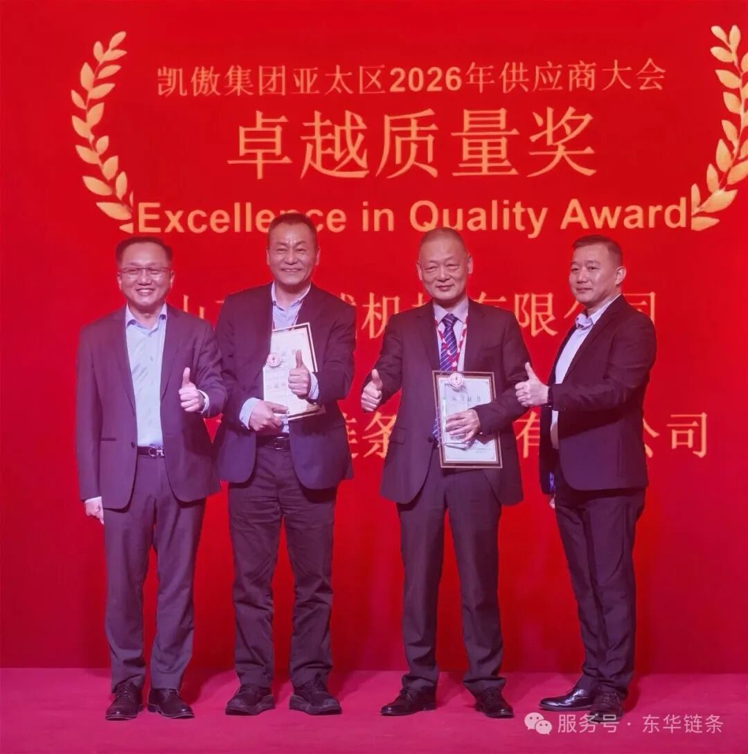 1月19日,东华链条应邀出席凯傲集团在厦门举办的亚太区供应商大会。会上,东华链条凭借全年“零缺陷”的卓越表现,被凯傲集团授予“卓越质量奖”。