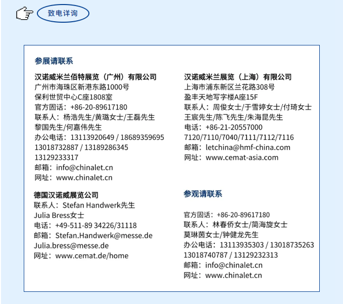 同期,还将举办广州国际数智装备与人工智能展览会,由汉诺威米兰佰特展览携手广州国际会展集团举办。展会覆盖数字技术与数智装备、智能机器人、低空经济与航空航天三大主题展,旨在共同构建贯穿产业链的数智新生态,全面赋能行业新质生产力与高质量发展。