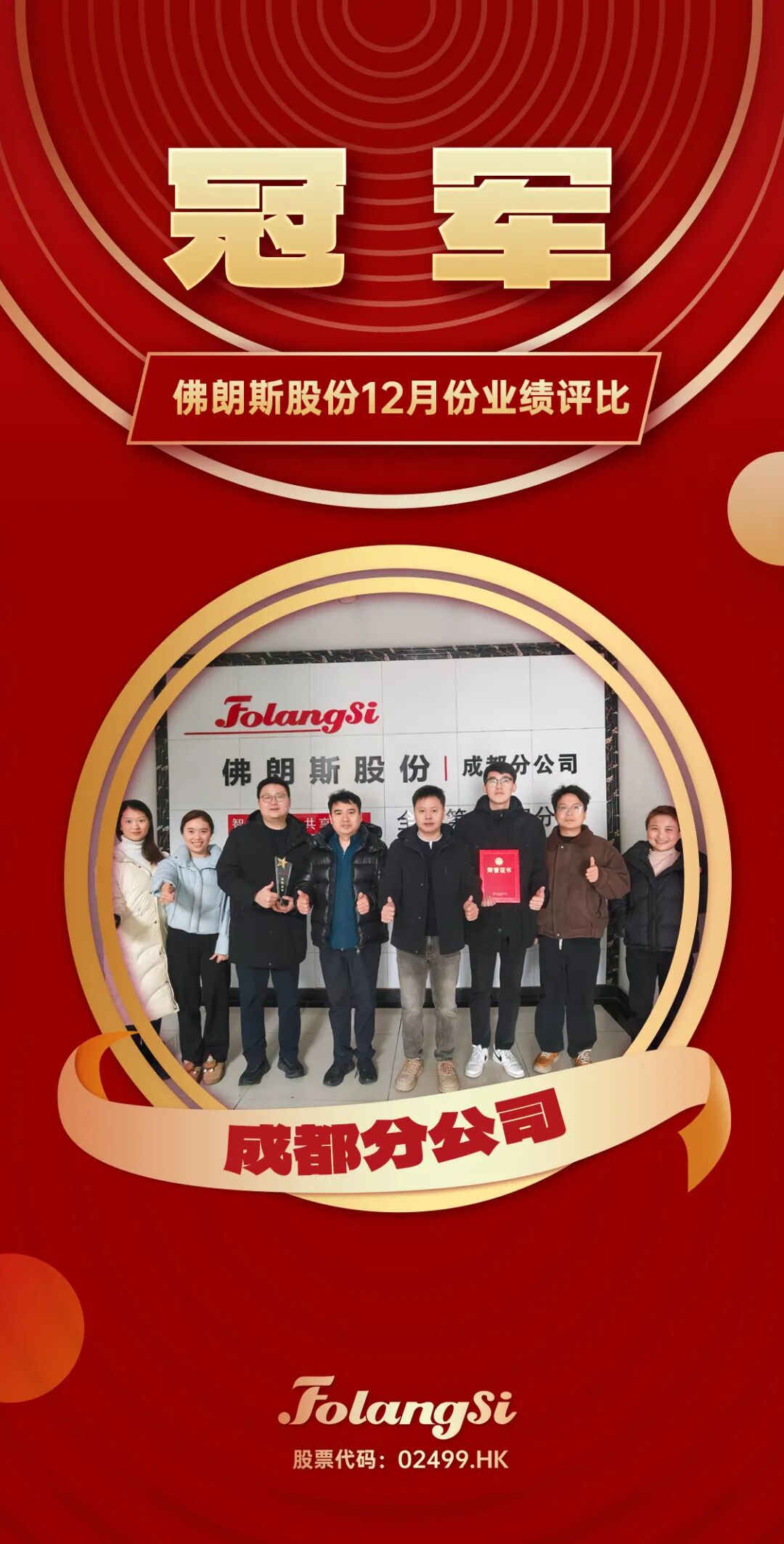 蛇辞旧岁吟古韵,马跃新程谱新章。在辞旧迎新的美好时刻,佛朗斯股份成都分公司凭借卓越的市场表现与团队努力,在2025年12月的业绩评比中脱颖而出,荣获冠军殊荣,为这一年的辛勤耕耘画上了圆满的句号,也为即将到来的2026 年奠定了坚实的基础与满满的信心。