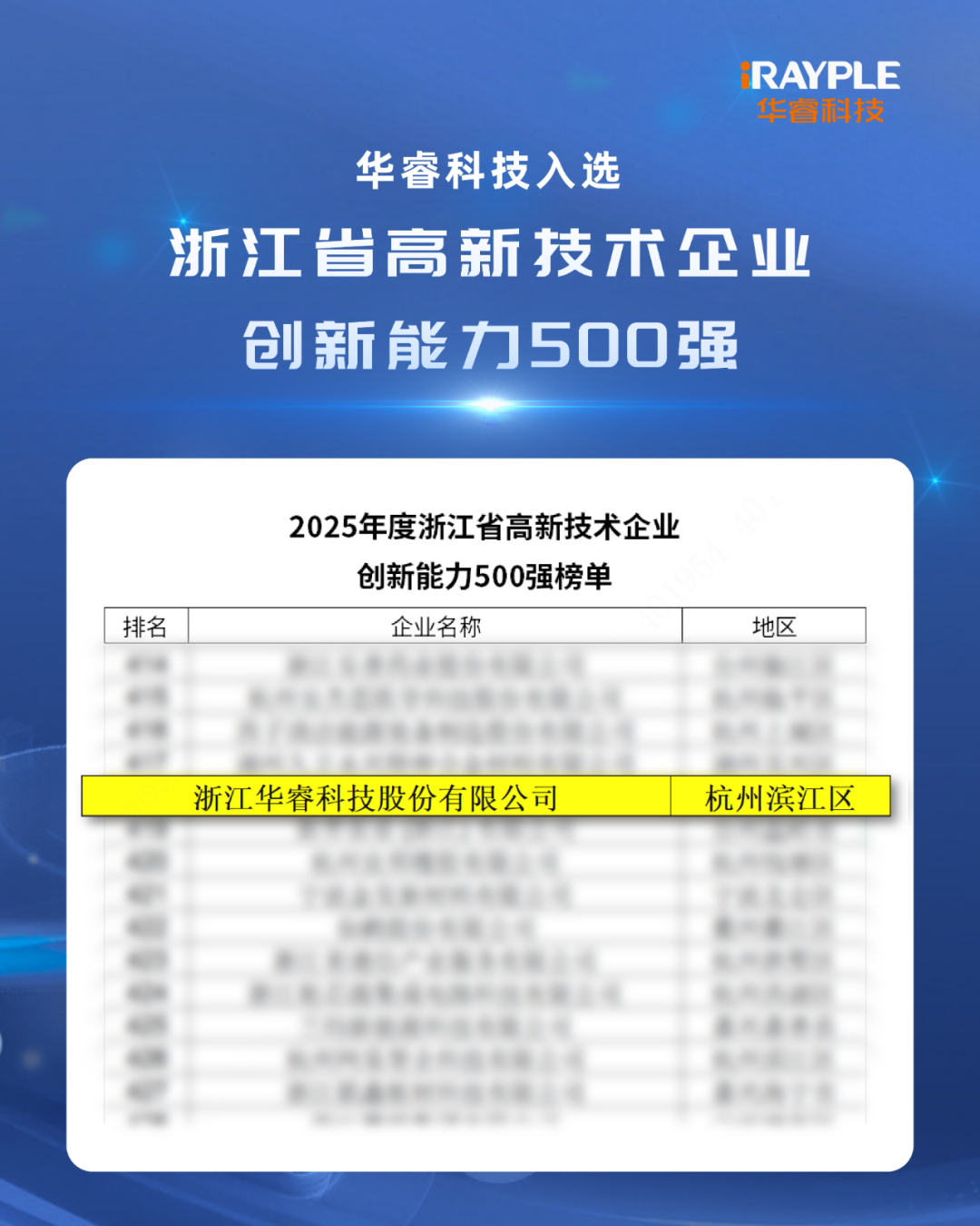 近日,2025年度浙江省高新技术企业创新能力500强榜单正式发布,华睿科技凭借持续的研发投入、领先的技术积累与突出的产业贡献,连续第三年成功入选。该评选工作由浙江省科技信息研究院、省工业和信息化研究院受托开展,旨在推动科技创新与产业创新深度融合,引导高新技术企业强化创新能力、发挥示范作用,为培育发展新质生产力提供支撑。蝉联三年获此认可,既是对我们在自主创新与场景落地方面长期努力的认可,也激励着我们继续深耕关键技术、拓展生态协作,携手合作伙伴共同推动制造业向智能化、高质量方向稳步迈进。