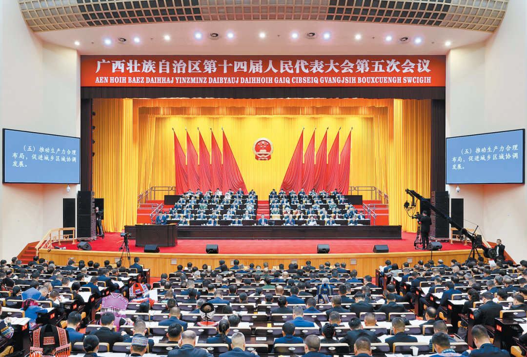广西壮族自治区第十四届人民代表大会第五次会议在广西人民会堂隆重开幕(图源:广西日报)